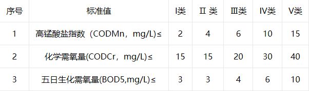 ①地表水I-IV類(lèi)水質(zhì)標(biāo)準(zhǔn)要求