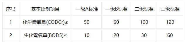 污水處理廠根據(jù)其排入的水域環(huán)境功能和保護(hù)目標(biāo)以及處理工藝的不同,將基本控制項(xiàng)目的常規(guī)污染物標(biāo)準(zhǔn)值分為一級(jí)標(biāo)準(zhǔn)、二級(jí)標(biāo)準(zhǔn)、三級(jí)標(biāo)準(zhǔn)。具體標(biāo)準(zhǔn)如下: